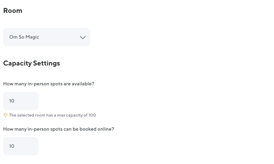 Enter how many in-person spots are available and how many in-person spots can be booked online
