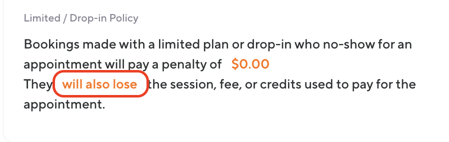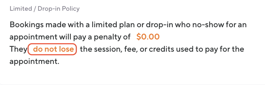 If a client late cancels or no-shows a drop-in appointment after paying a deposit, you can determine whether that deposit is retained or refunded in the Appointment Settings.The deposit refund policy is controlled by the "Limited/Drop-In Policy" settings, which allow you to configure separate rules for late cancellations and no-shows.