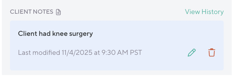 Previously, there was no structured way to record or review client progress across appointments. Staff couldn’t easily see what happened in a prior session, track client improvements, or document relevant context (like injuries or attendance updates). This created gaps in communication and inconsistency in client experience.