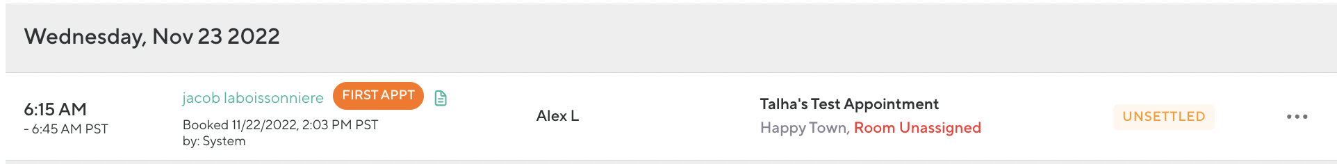 An appointment booking with a note will show a visual indicator on the schedule view (by client or staff)