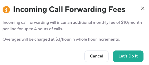 Now, let's talk numbers for the call forwarding feature. Here's what you can expect cost wise when you add this feature and supercharge your features:
