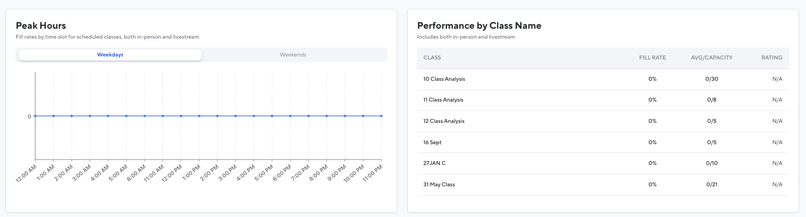 The Classes tab turns raw attendance and rating data into clear insights and actionable steps, helping you optimize your schedule, improve class performance, and increase revenue with confidence.
