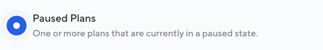 Use the paused plans option to find contacts who have plans that are currently in a paused state. This can be useful if you want to reach out to these contacts and encourage them to resume their plan.
