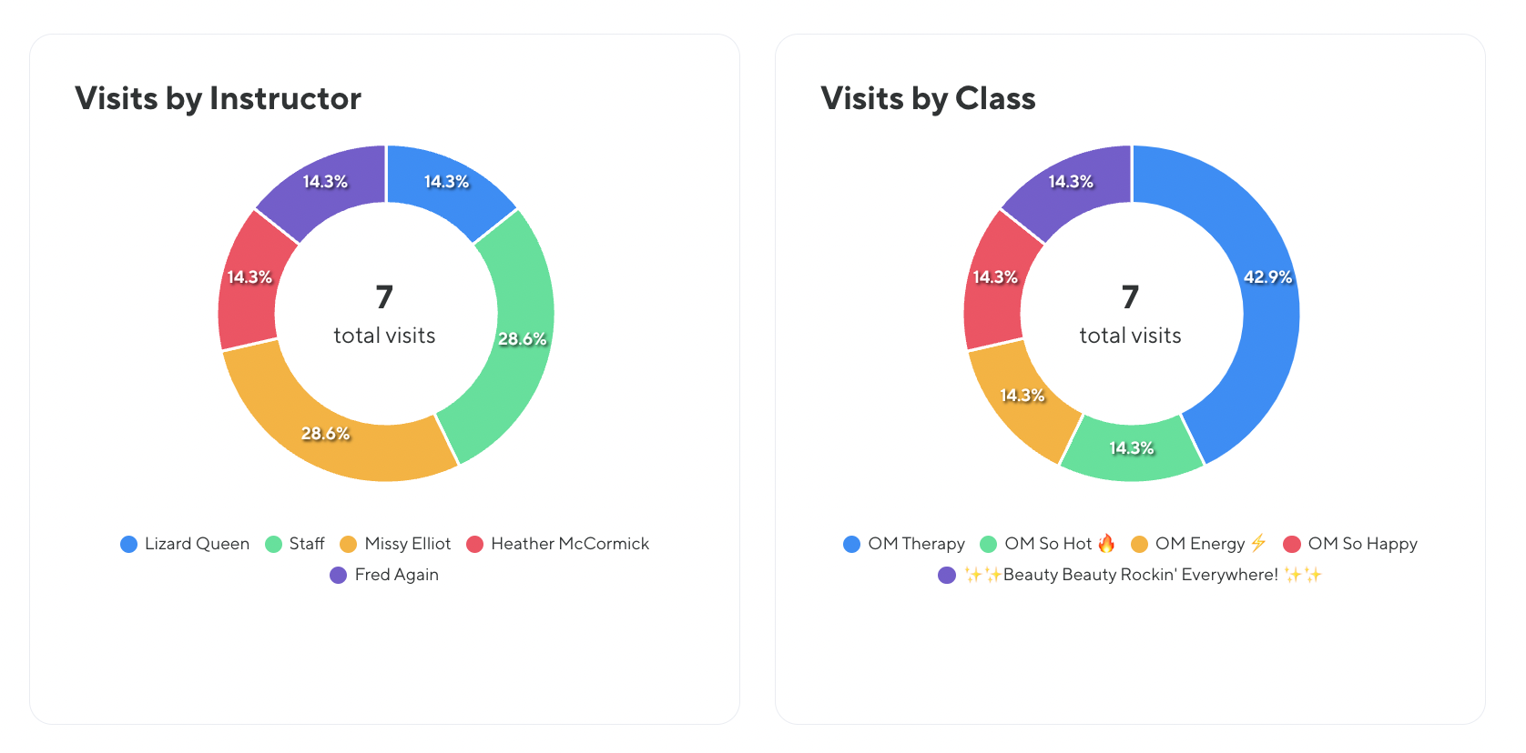 Get a snapshot into which instructors a client likes to attend the most (or least) and how many classes they’ve taken in your studio with that specific instructor Note: By seeing what instructor a client prefers, you can suggest new times and classes taught by that instructor, encouraging additional bookings.
