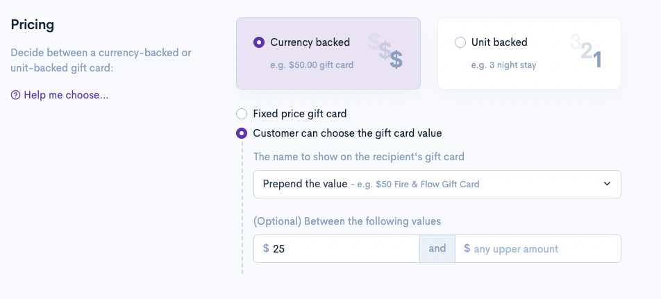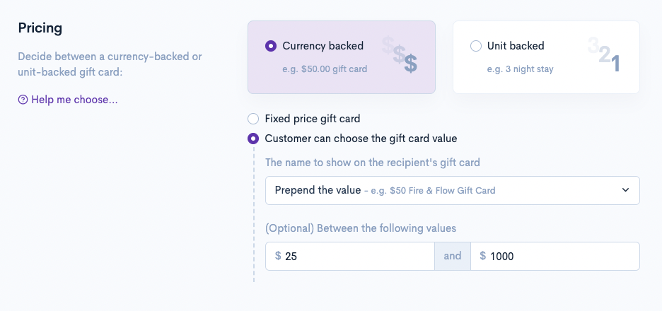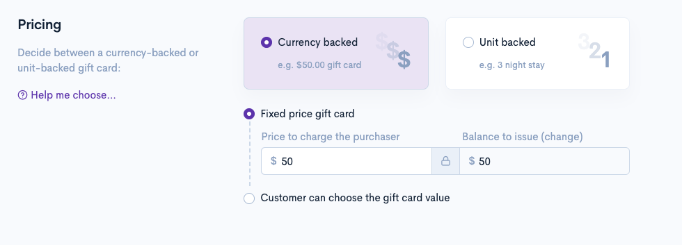 Enter Pricing, then choose Currency backed (not Unit backed)