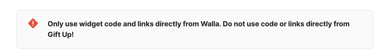 Only use or share Walla widgets and links on your site for client gift card purchases