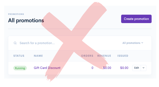 Walla doesn’t currently integrate with the GiftUp! Promotions feature, which means any items set up under Promotions in GiftUp! won’t work in Walla.
