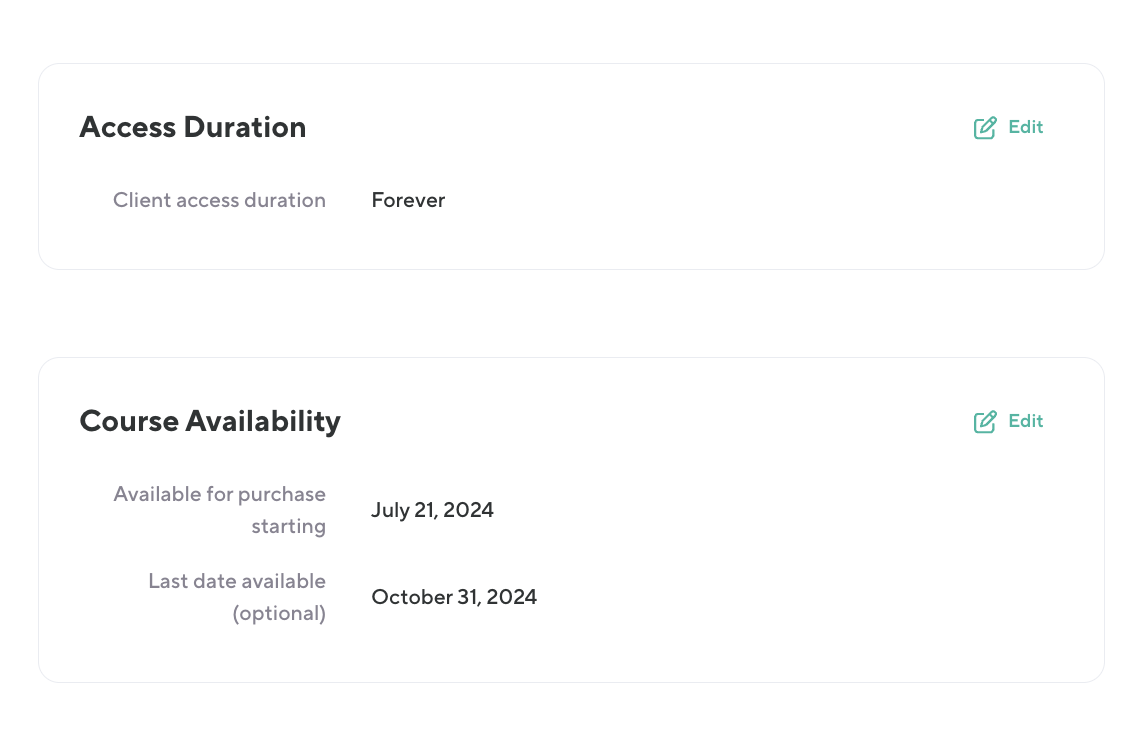 Set Purchase Availability to define the timeframe during which the course can be purchased: