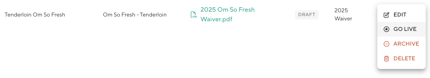 Making a waiver Live for a location means clients at that location will be required to sign it