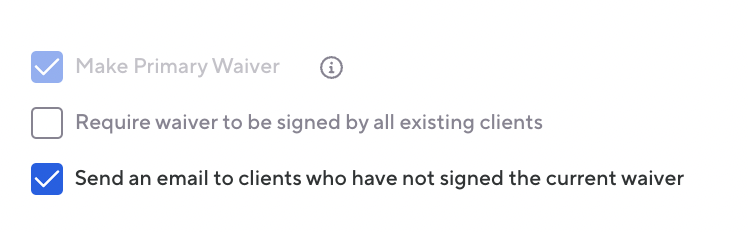 In the Waivers & Terms page, check the box Send an email to clients who have not signed the current waiver and Save. To access this setting follow these steps: