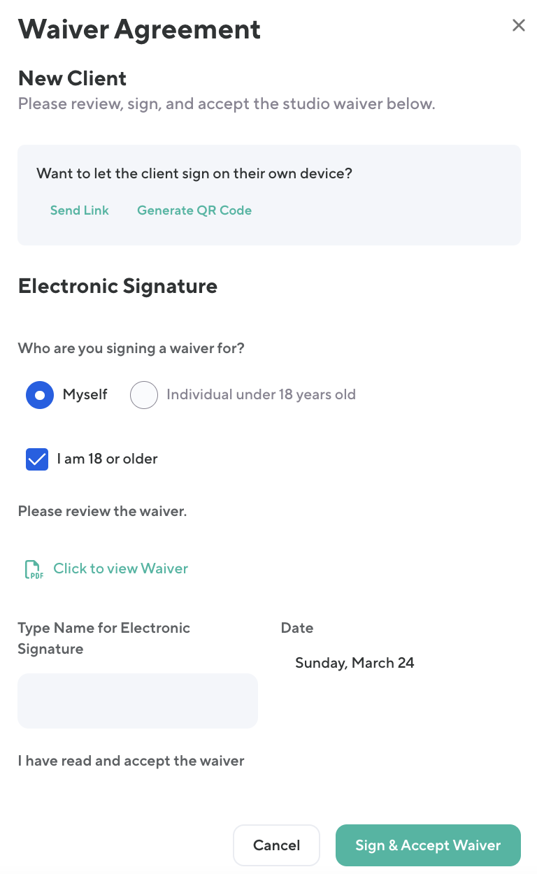 Resend a link to the waiver or if the client is in-studio you can generate a QR code for the client to sign the waiver.