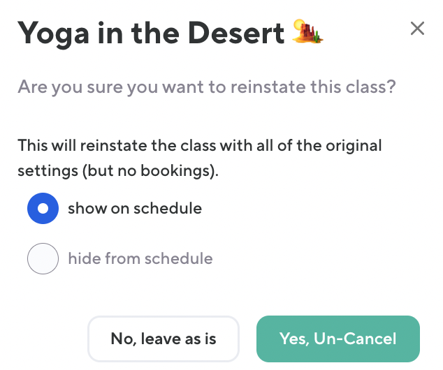 To un-cancel an individual class: