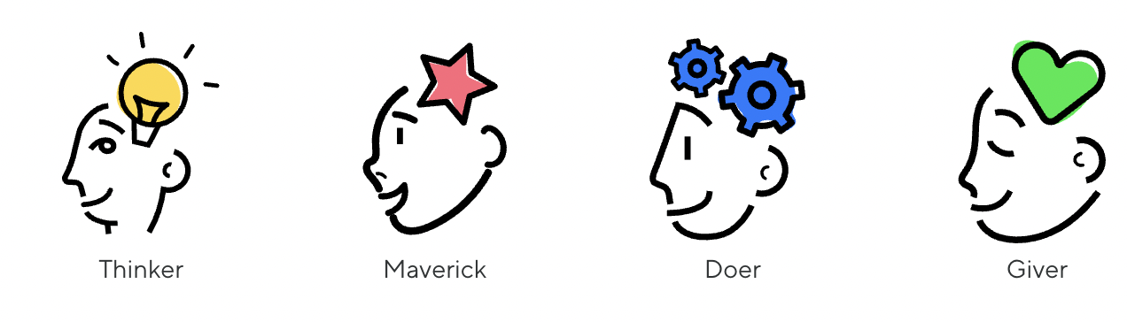Red represents Mavericks: Independent, confident decision-maker; will book classes alone; appreciates honest interactions.