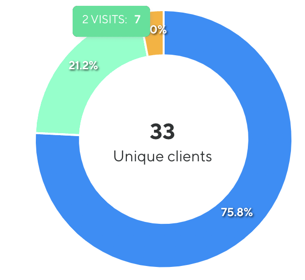 2 visits: Clients who took one class with the instructor and returned only once to the same instructor during the selected period.
