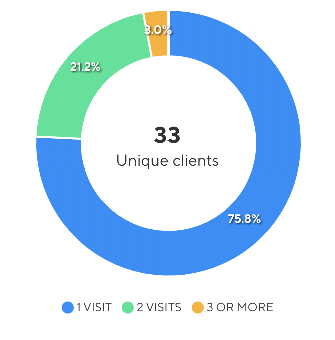 Unique clients: The number of clients who made bookings over the selected period. A client can make more than one booking but they are counted as one towards the unique client count.