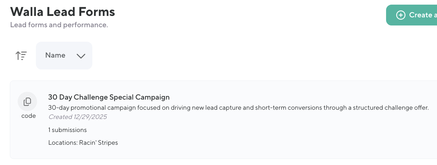 From the main navigation menu on the left, go to Marketing → Lead Sources & Forms.