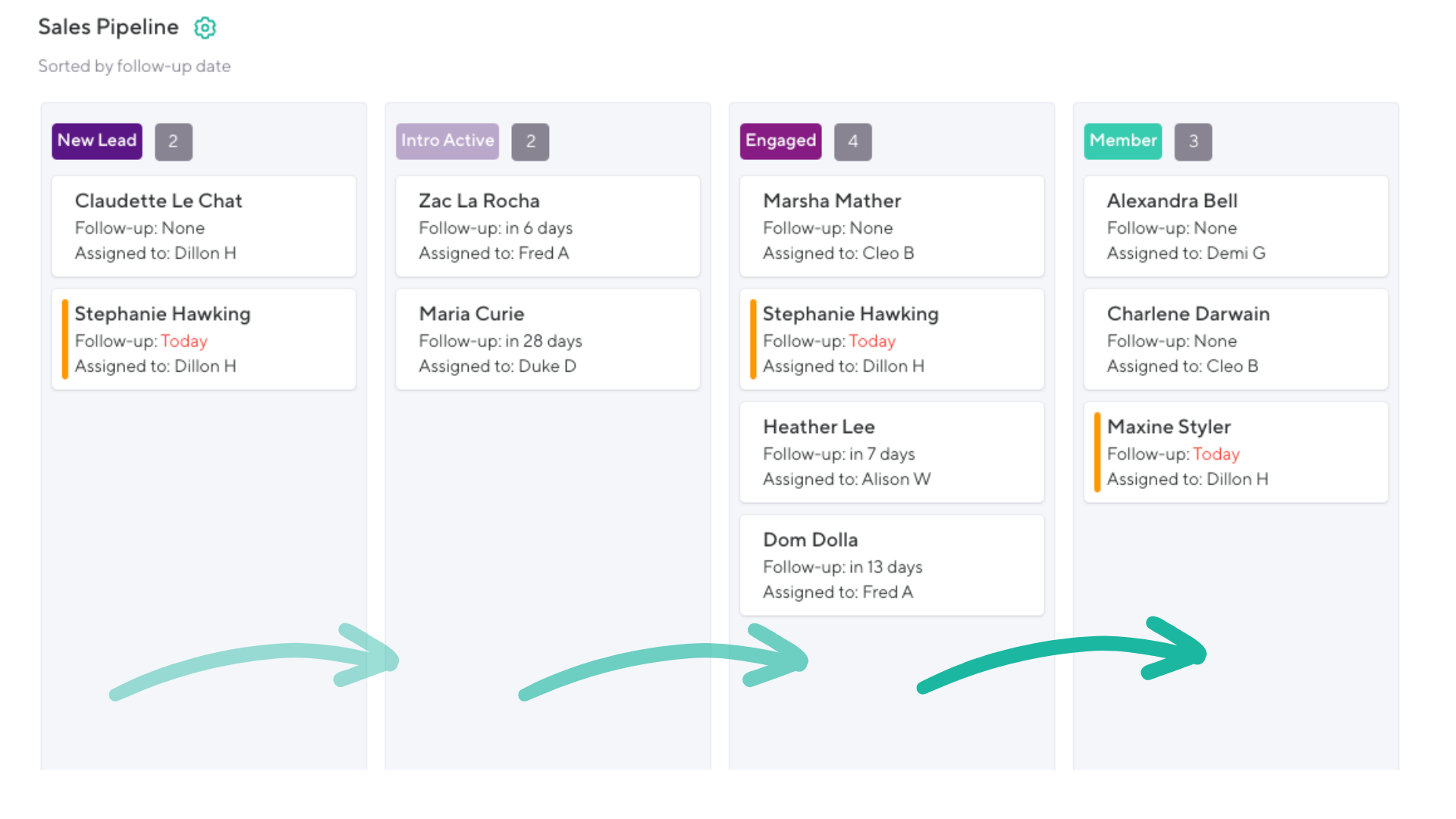 The Card View transforms your sales and service process into a visual journey, making it easy to understand where each client stands in their relationship with your studio.