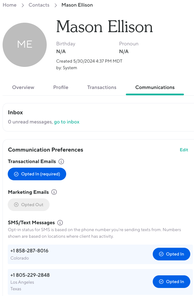 In our example below, if a client has activity at Colorado and has opted-in, you’ll see that by default. If they opted-in to an additional location but don’t have activity there, that location will be hidden but can be viewed if you click ‘Show All Location’. If opting-out of a phone number that has multiple locations, you will not receive communications from all locations associated to that phone number.