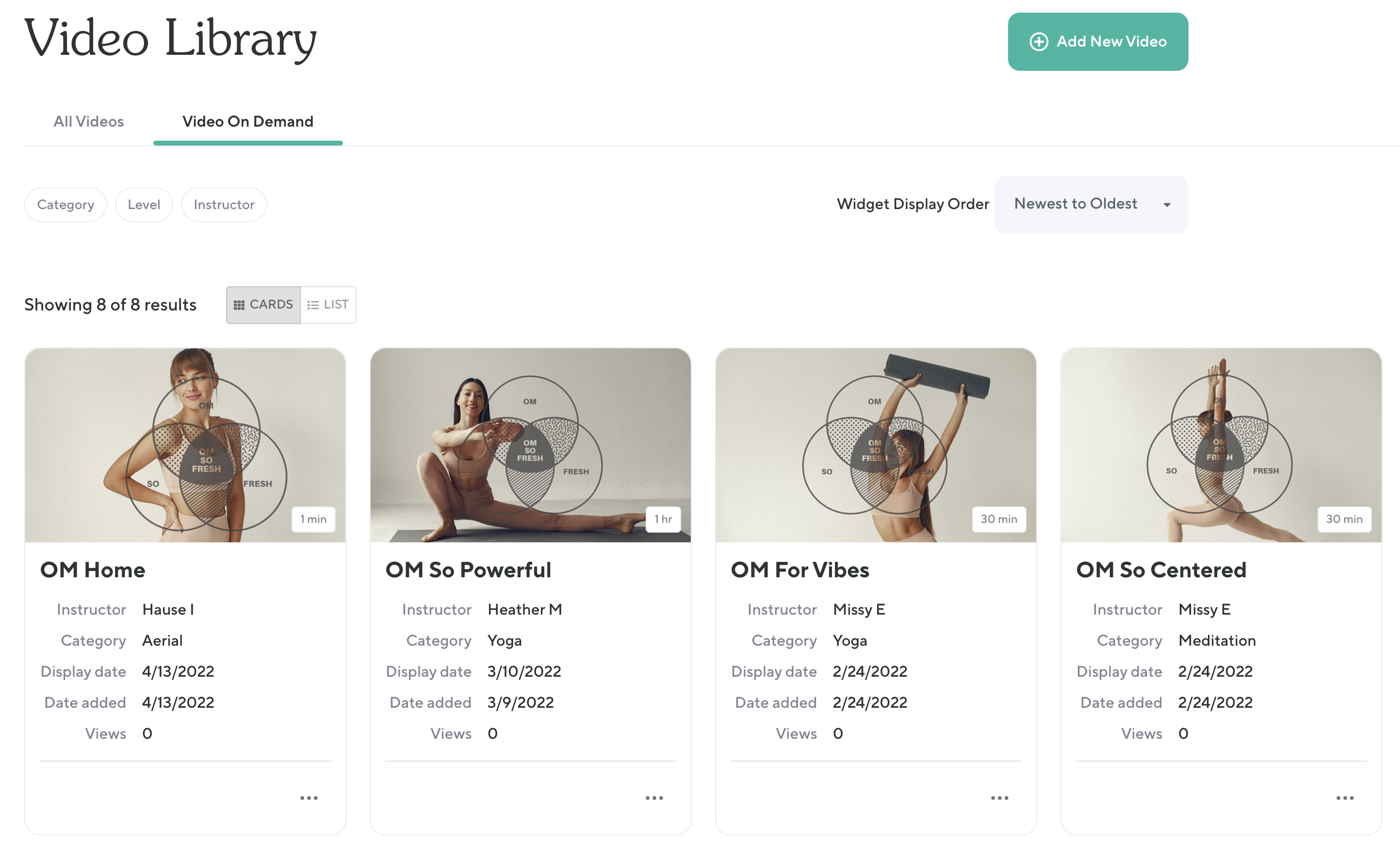 Hide Video On Widget: Once uploaded, choose the three dots on the bottom right of the video card and select Hide Video on Widget. This way you can upload a video and then make the video public facing later.