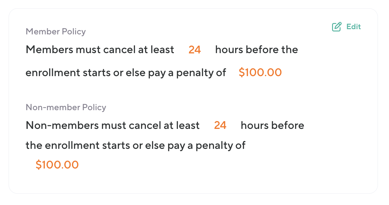 You can set your enrollment cancellation policy for both members and non-members to control how cancellations are handled when clients are removed from an enrollment.