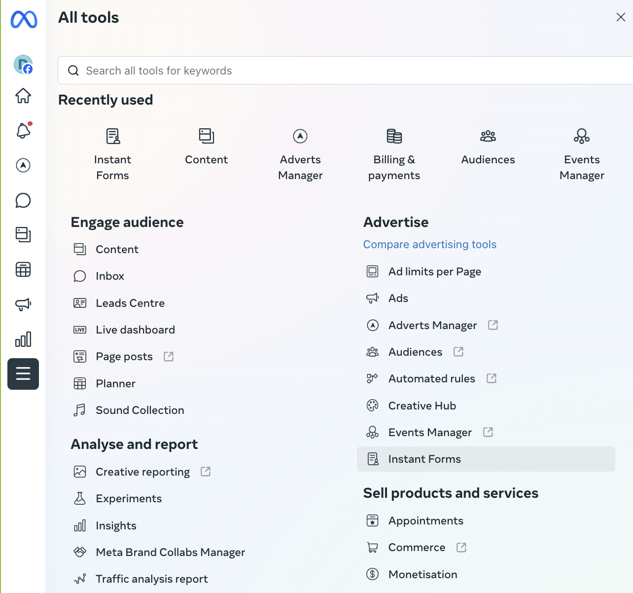 On the Side Navigation bar select All Tools in the side navigation bar