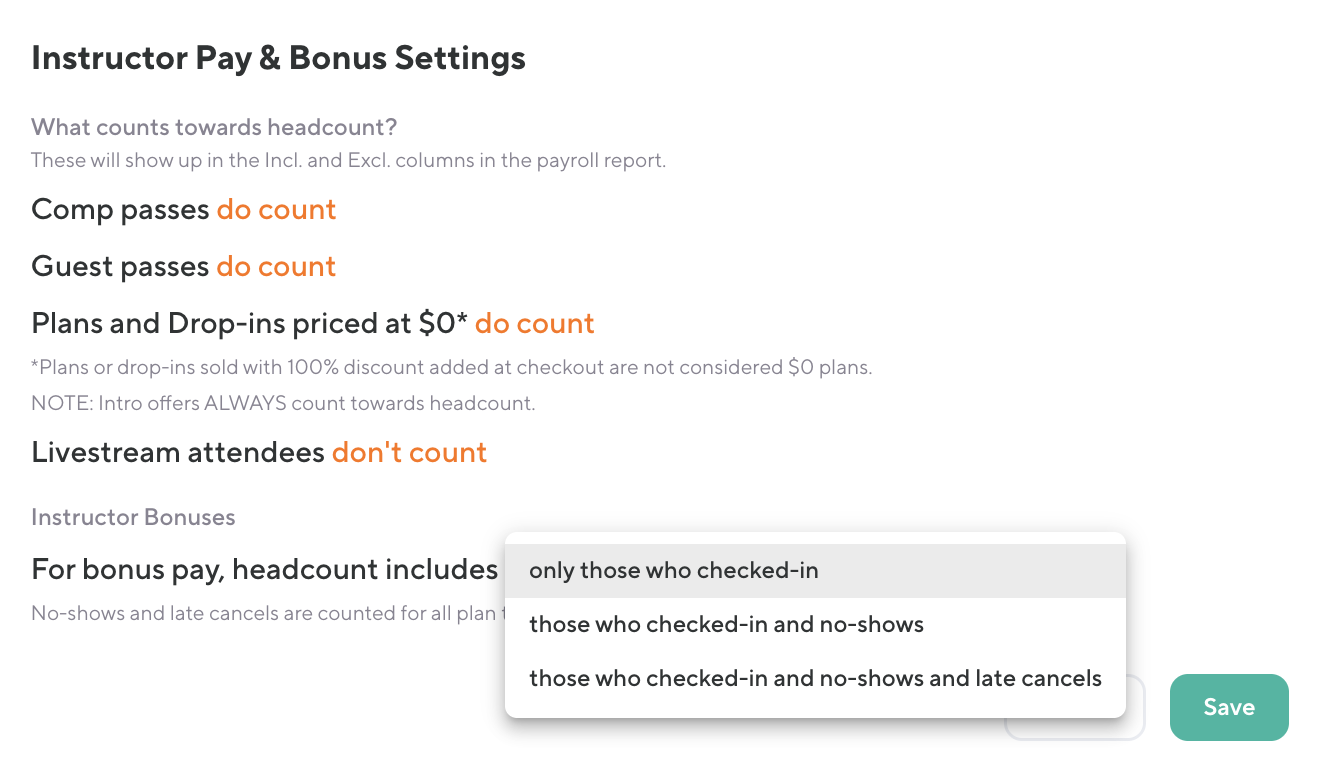 What Counts Towards Headcount? You have the option to determine whether certain elements count towards headcount bonus calculations for instructors.