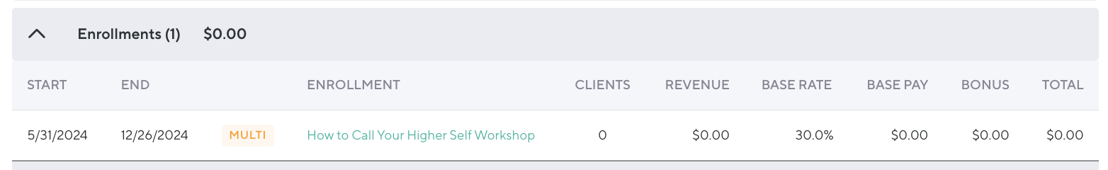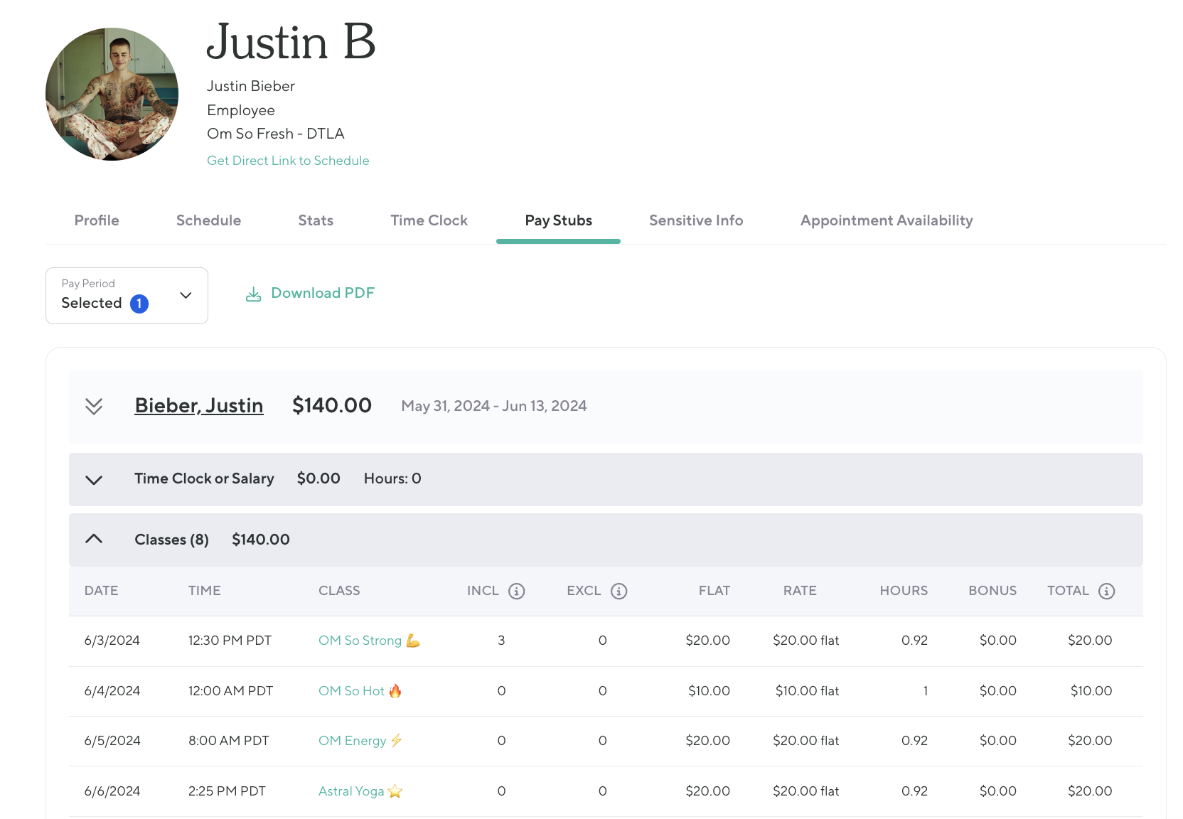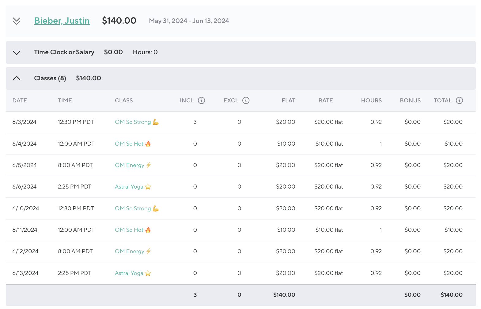 ☝️ Important: If a class has multiple instructors, only the first staff member will display on payroll.