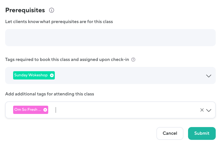 A prerequisite is a tag you assign to a class to restrict booking to clients who meet certain criteria—usually based on experience or completion of another class.