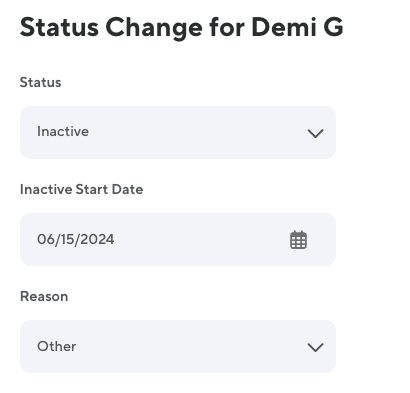 Enter an inactive reason: Leave of absence, personal reason, relocation, other