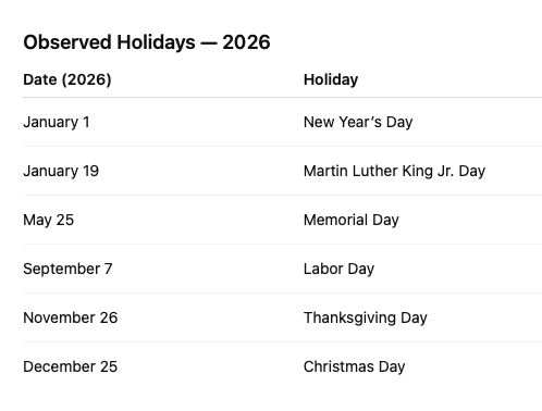 Observed Holidays