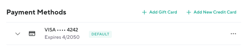To remove the old card, go back to the Payment Methods section of the client's profile, select the three dots on the far right of the old card, and choose Delete to remove the old card