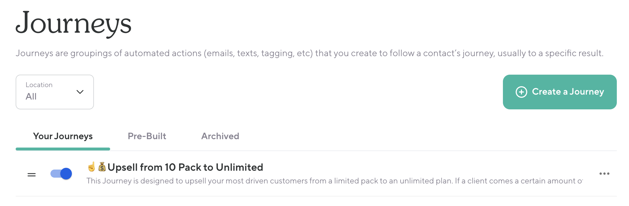 An automation can be thought of as an email and/or text that is a part of your Journey. You can have one automation under a Journey or you can have multiple automations under a Journey. An automation, email and/or text, sends to the defined audience you set up under the Journey.