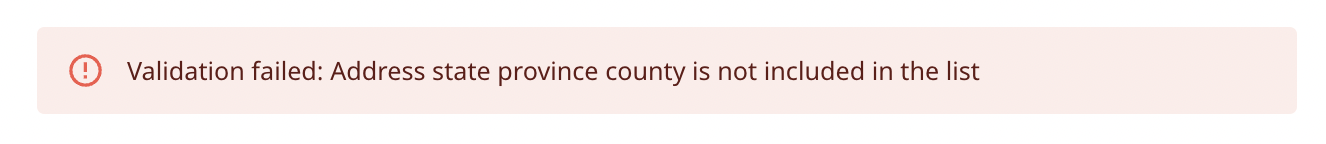 When entering a state, be sure to enter only the two character uppercase abbreviation for both state and country. If the state in my address is California then CA and US should be entered.