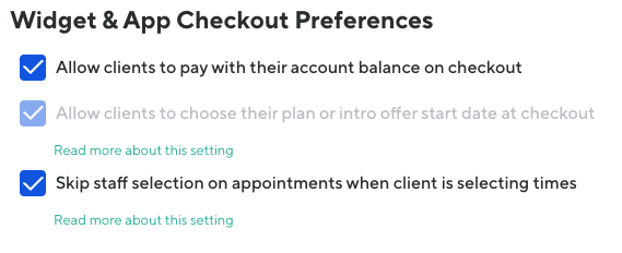 Widget & App Checkout Preferences
